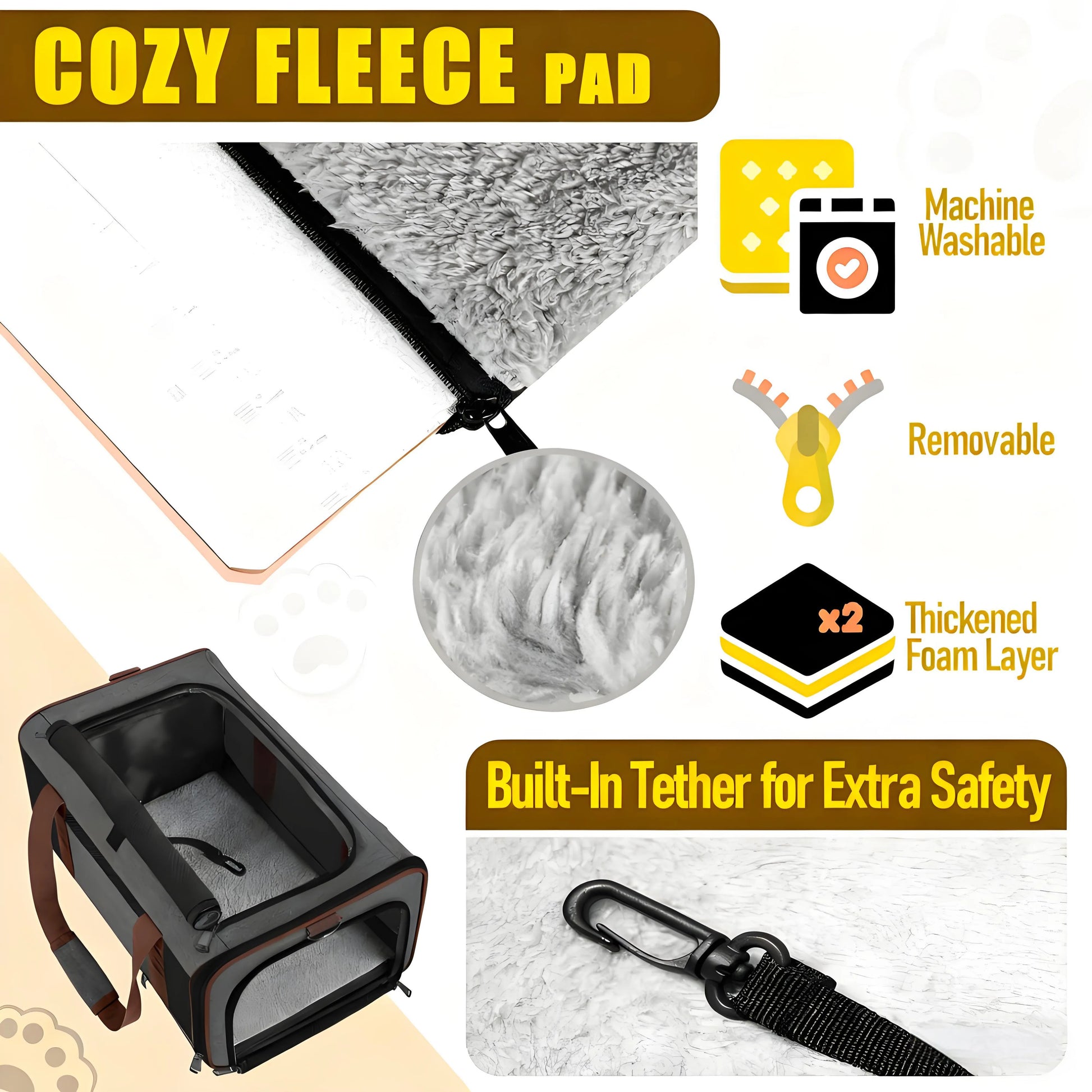 - Removable dual-use mat with soft and warm fleece on one side and cool breathable fabric on the other